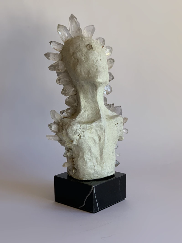 These forms feel unearthed rather than made – fossil-marked, crystal-crowned, veiled in mineral textures and sacred quiet. They rise as emissaries of forgotten cosmologies: guardians, breakers, dreamers, and spirits born from earth, wind, fire, and void.